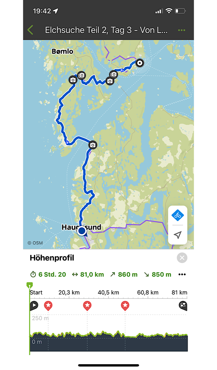 Der halbe Tag war schon vorbei und immer noch 70km zu fahren. Zum Glück ging es nun die meiste Zeit bergab, abgesehen von einigen Ausnahmen. Die Restkilometeranzeige stieg zwar stetig, aber leider nicht genug. Die letzten 10km sind wir dann ohne Motorunterstützung gefahren. Mit glühenden Hintern sind wir dann doch noch am frühen Abend in Byrkjedal angekommen. Ein kleines Dorf inmitten der Berge.